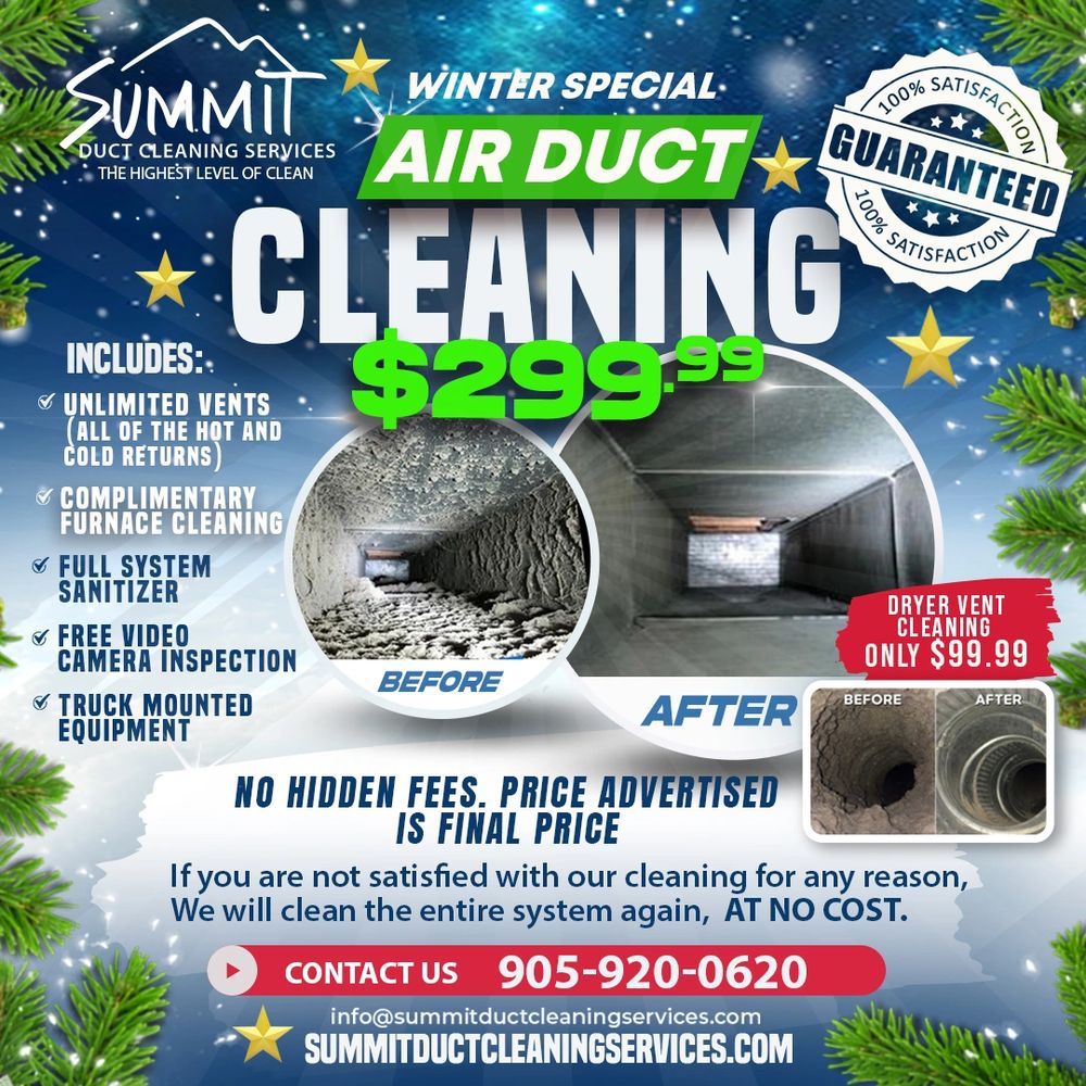 Summit Duct Cleaning Services specializes in Air Duct Cleaning in Hamilton, Niagara, Haldimand County, Brantford, Halton, GTA and the surrounding area. With over 20 years of experience, our team of specialist are there for all your duct cleaning needs.